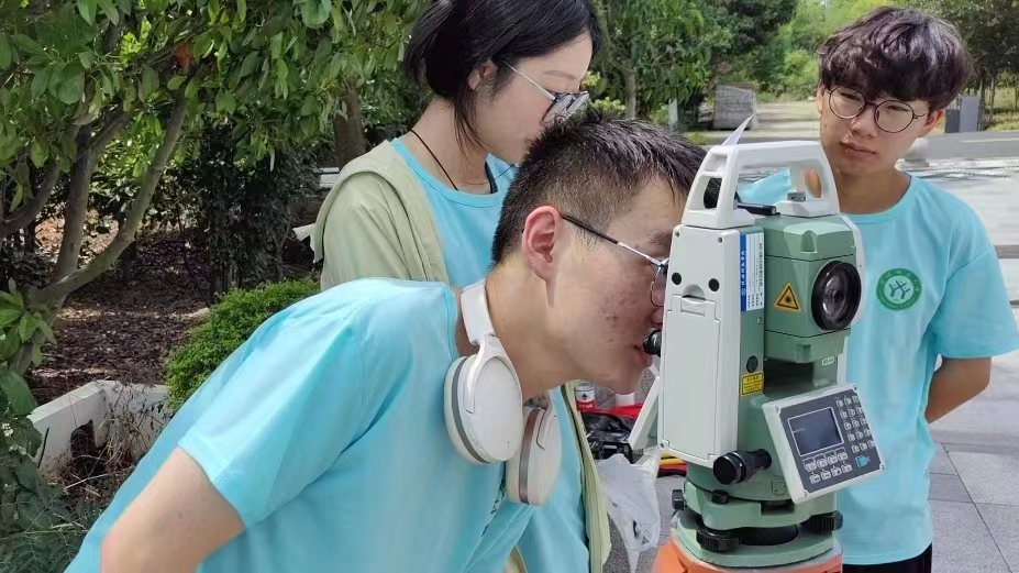 探寻非遗记忆,承文化之脉。炎炎烈日下,实践队员们正使用专业器材开展工程测量,东岳村是河南省第一批传统村落,不仅保留着大量的古建筑,还有着光山花鼓戏等非遗资源,队员们在参观完东岳古街和花鼓戏传承中心后,便开始进行建筑测量,将“第一课堂”知识融入“第二课堂”,为东岳古建的规划发展贡献自己的一份力量。“这次社会实践活动,对我们而言,不仅仅是一个简单的体验过程,更是一个深度学习和自我成长的过程,我们不仅感受到中华优秀文化的深厚底蕴和独特魅力,还将课本上的知识应用到了乡村振兴中。”2022级土木工程专业学生李秦扬讲到。